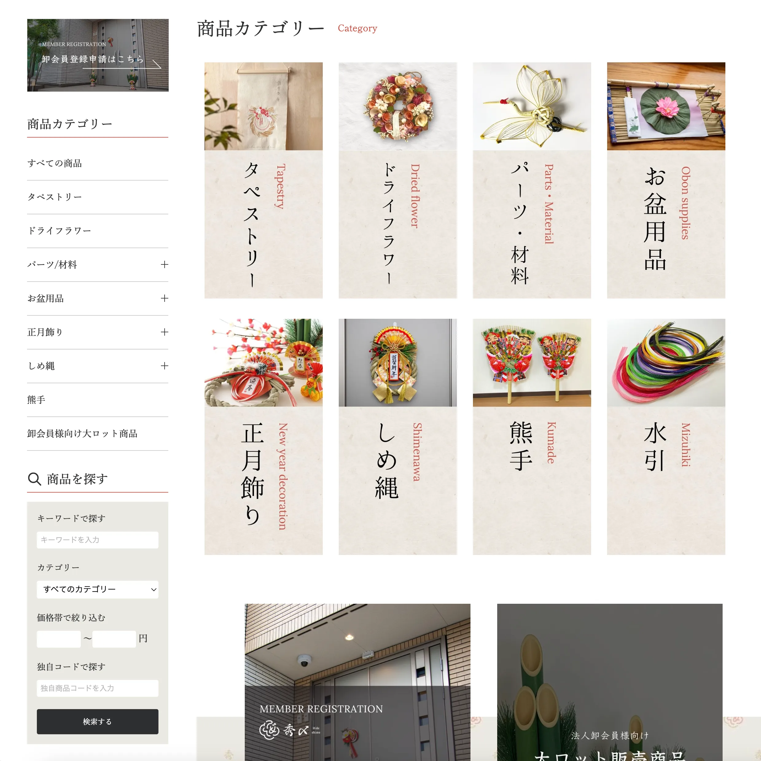お正月飾り、しめ縄、お盆飾りの販売を行う、株式会社秀〆様の公式オンラインショップの制作を担当させて頂きました。