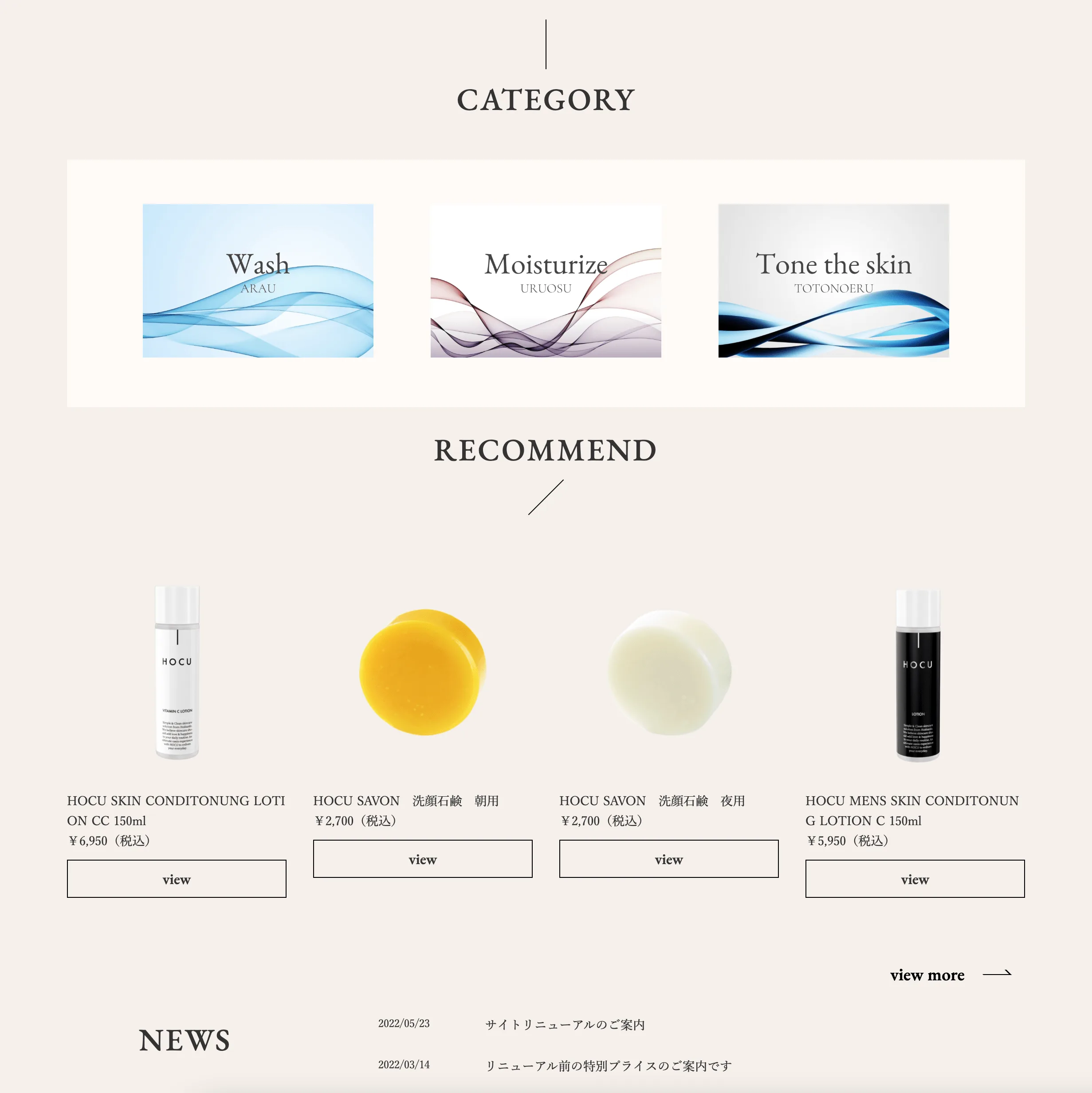 北海道札幌のスキンケアブランド「HOCU」さまのECサイト制作を担当させて頂きました。